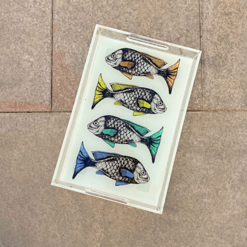 Delve into the mesmerizing world of intricate gazes with this acrylic tray, where traditional artistry meets contemporary flair. Hand-drawn eyes peer out amidst a kaleidoscope of colors, inviting contemplation and curiosity with every glance.