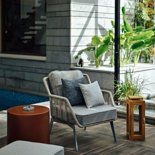 Golden teak, Outdoor Grade Stainless Steel, Outdoor Jute Fabric, Outdoor Rope